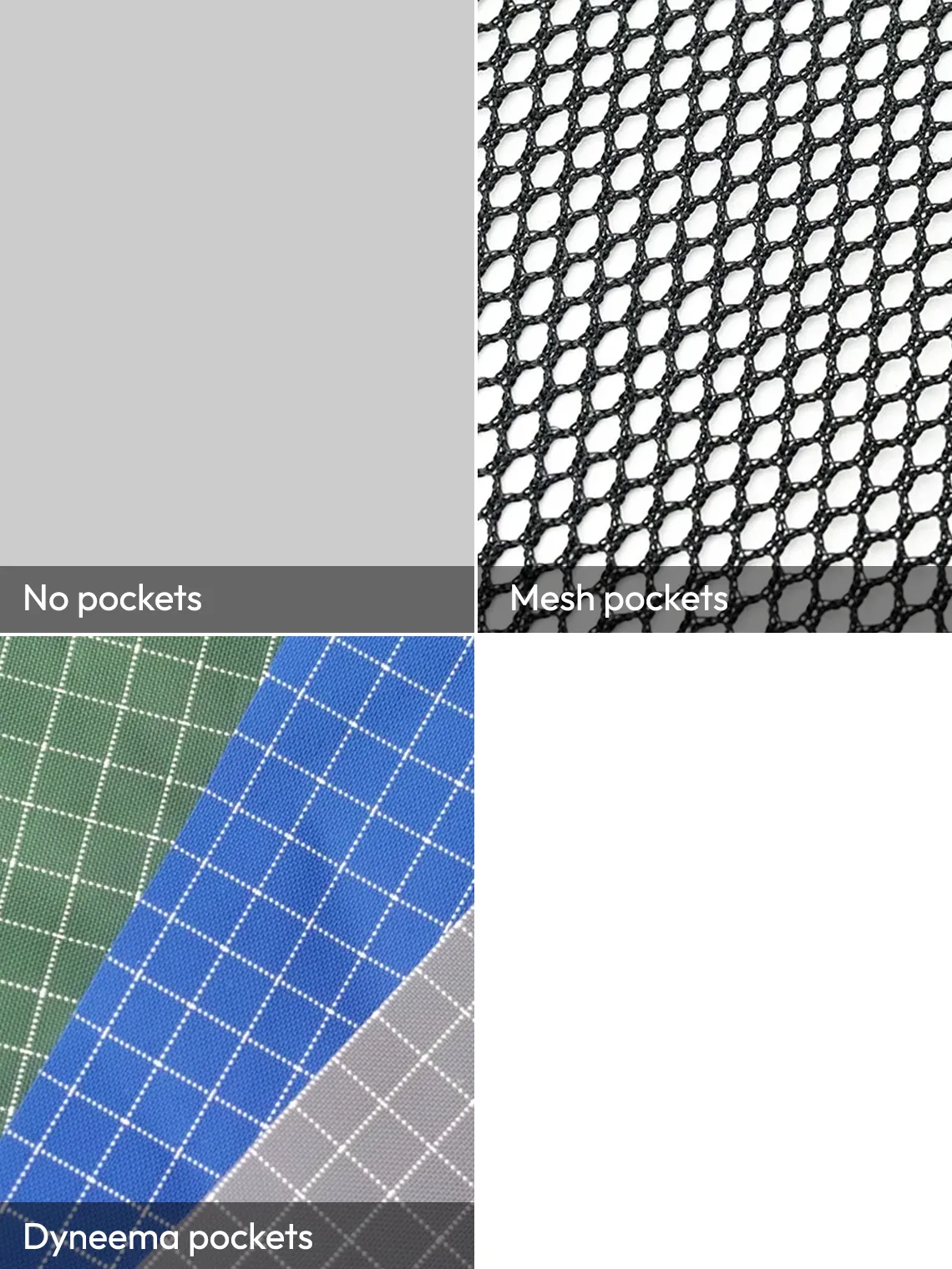 - If you select a Dyneema pocket, the color will be chosen by us, or you may specify your preferred color via email.