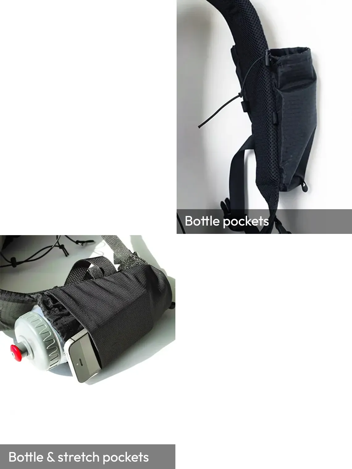 You can choose bottle pockets or bottle & stretch pocket.
